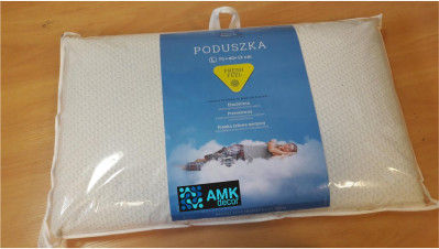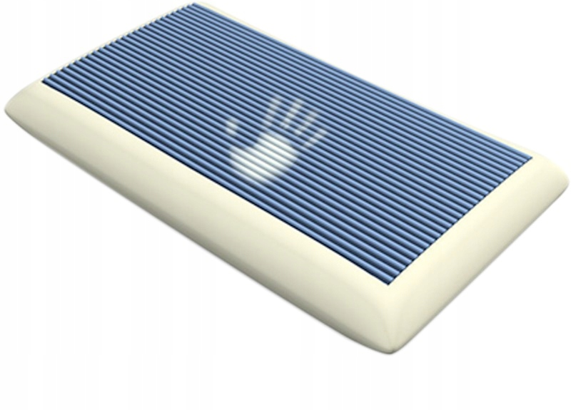 Duża i wygodna poduszka dwu-kompozytowa, wykonana z nowoczesnej wysokogatunkowej, wtryskiwanej pianki memory (odlew) oraz z dodatkowej warstwy specjalnej oddychającej pianki z granulkami z żelem chłodzącym, dla uzyskania odświeżającego efektu przyjemnego i zdrowego snu.